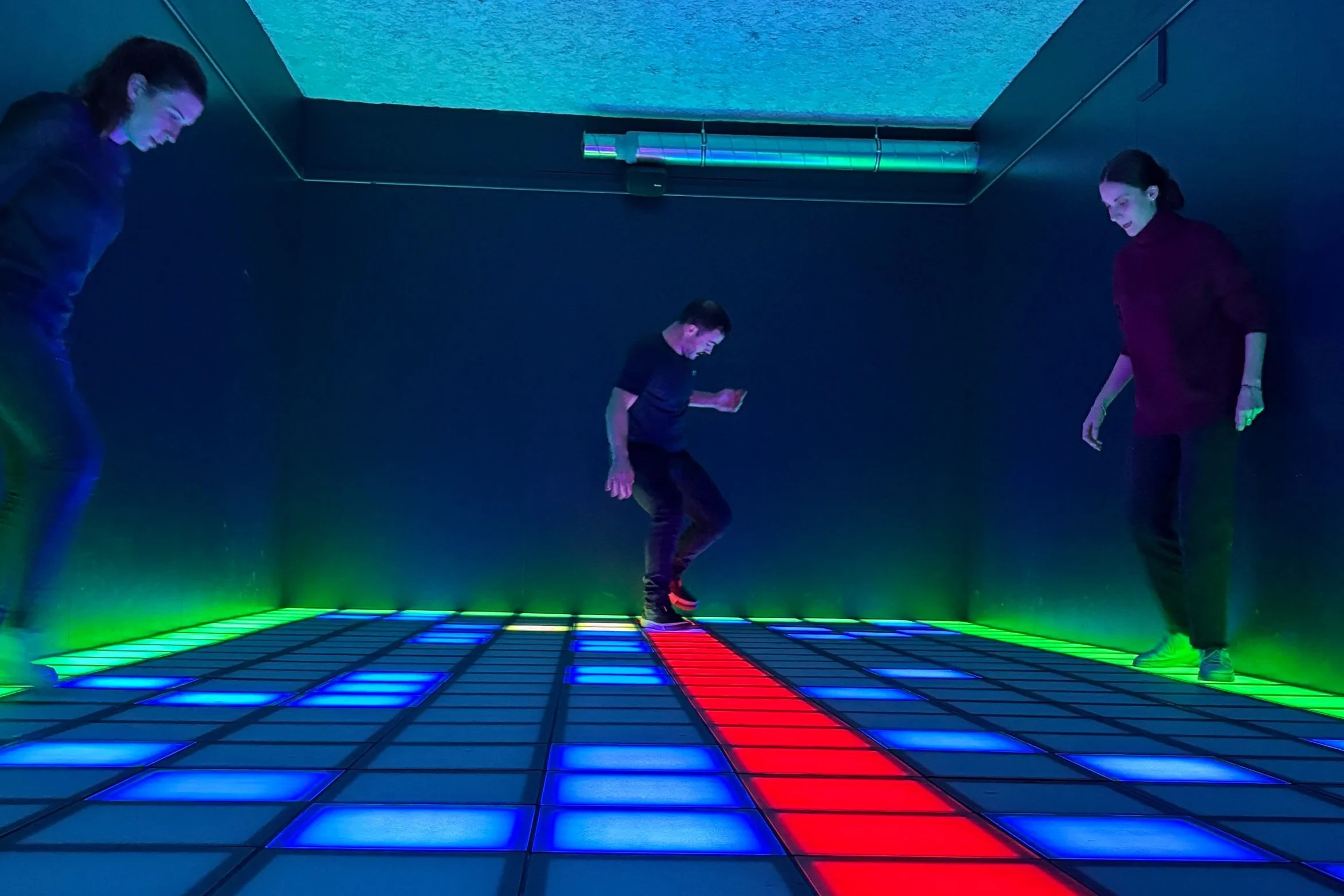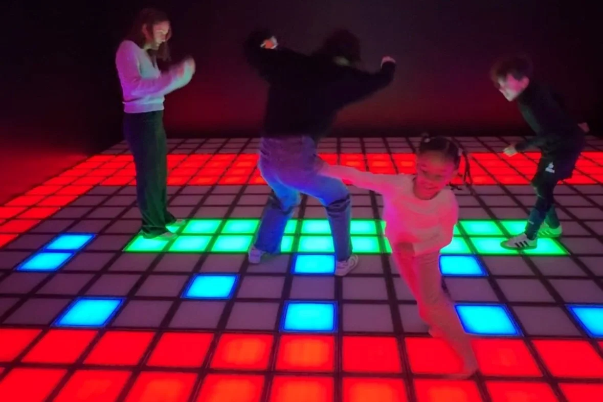 Sautez sur nos dalles lumineuses interactives, désactivez les bleues pour marquer des points, réfugiez-vous sur les vertes pour vous protéger et évitez les rouges pour rester en vie. Défiez-vous sur des mini jeux endiablés et tentez d’atteindre le dernier niveau